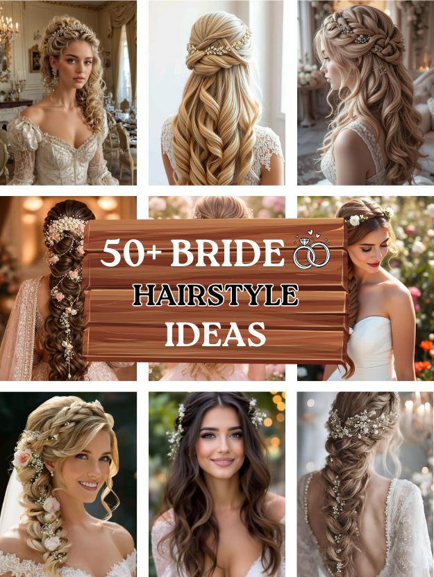 In this collection of 50+ bride hairstyle ideas, you’ll find gorgeous inspiration for every bridal style, hair length, and wedding vibe. From timeless updos perfect for traditional ceremonies to effortless loose curls for outdoor and boho weddings, these hairstyle ideas are designed to help you discover the perfect look that matches your personality. You’ll also find styles that work beautifully with veils, tiaras, floral accessories, and statement hairpins.