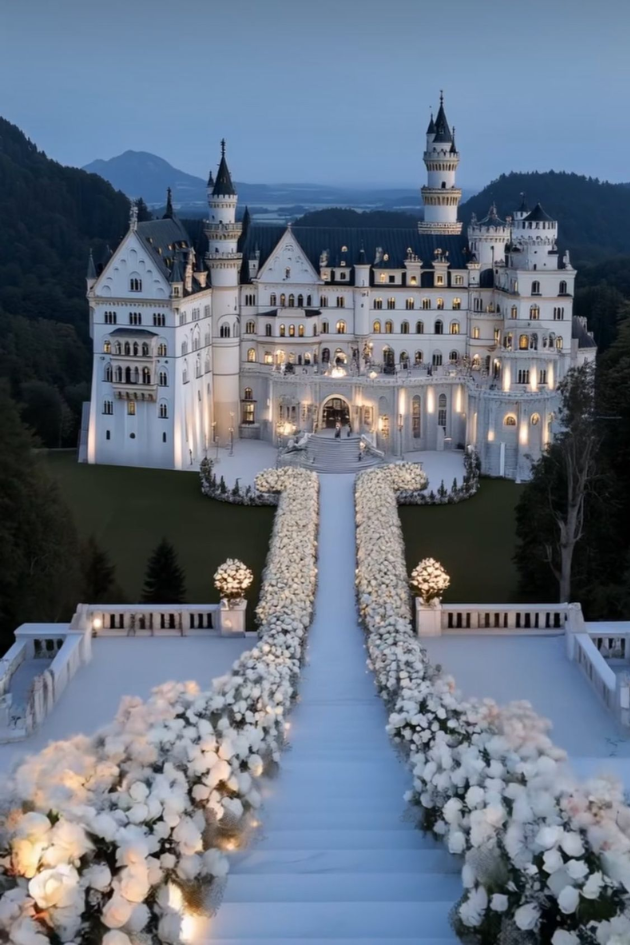 2. Royal Castle Wedding with a Magical Floral Walkway
