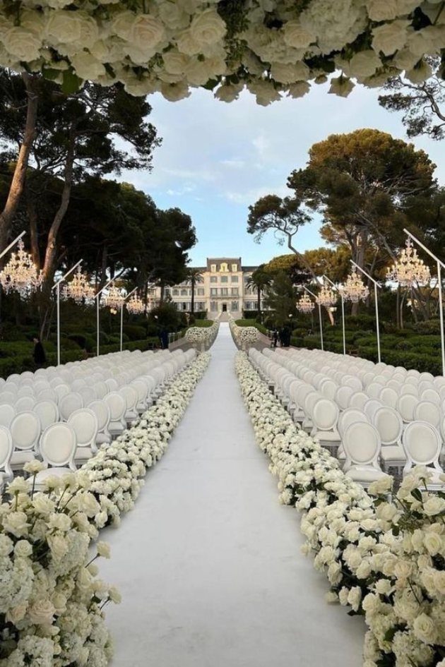 26. Grand Elegance: A Majestic White Wedding Aisle