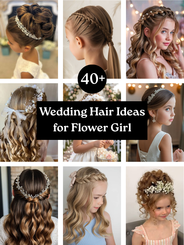 In this guide, I’ve gathered 40+ wedding hair ideas for flower girls that are as cute as they are practical. From easy, natural styles with soft waves to braided looks and floral accessories, you’ll find inspiration for every personality and hair type. Each hairstyle comes with images and clear titles to help you choose the perfect look.