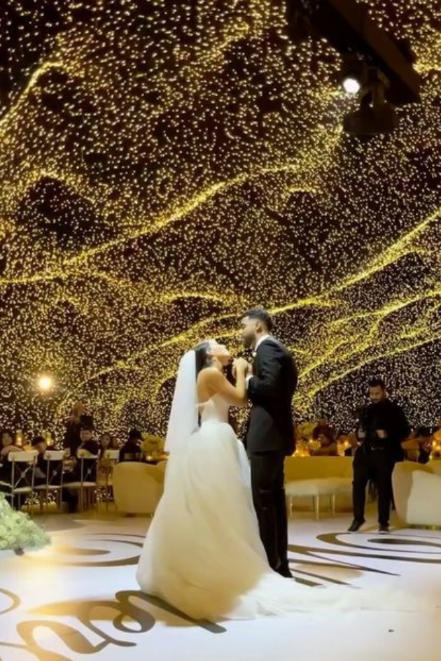 Create a magical atmosphere with a starry sky-inspired ceiling, filled with twinkling lights, as you share your first dance under the stars. This dreamy, romantic setting adds a touch of wonder and elegance to your celebration.
